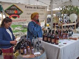 心に集まります。ノルマンディーの名産品(カマンベールやヌシャテルなどのチーズ、リンゴのお酒シードル等)から、フランス全国のもの(エスカルゴ、カスレ(豆料理)やシュークルート(アルザス地方の名産、キャベツの塩漬け料理)、地元の新鮮な野菜や果物などなど、並んでいるものは、どれだけ見ても足りません!
